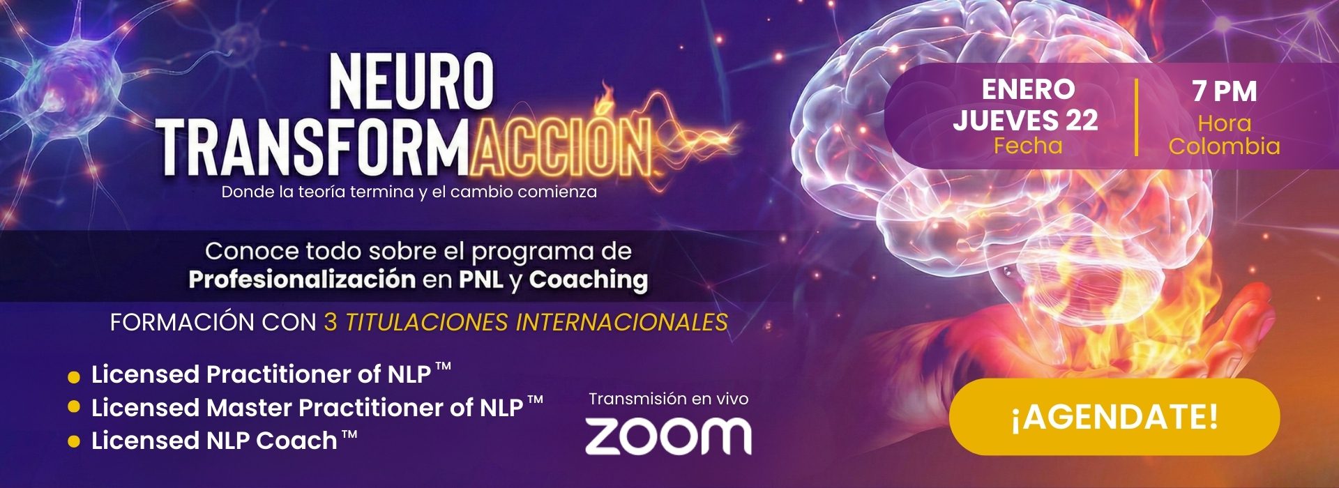 Con más de 18 años de experiencia, ofrecemos entrenamientos de alto impacto en Programación Neurolingüística (PNL) y Coaching.